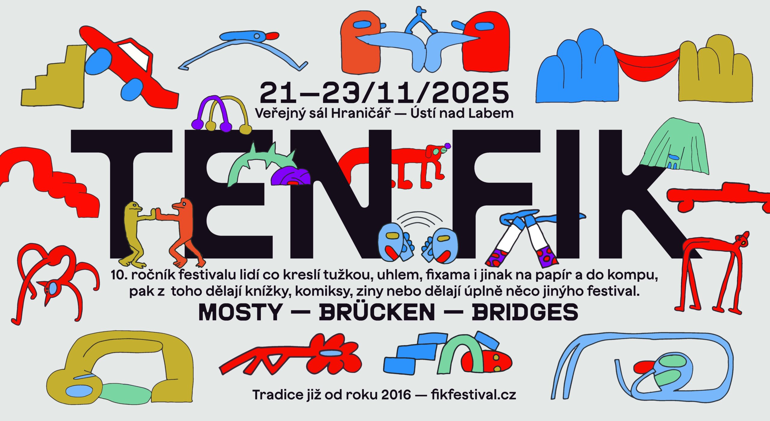 Ústí nad Labem čeká v listopadu již 10. ročník festivalu současné ilustrace, komiksu a videoher. Letošní téma Mosty vyzdvihuje hlavně propojování: mezi světy, autory, médii i světem fantazie. Pozvaní tvůrci pracují s imaginativní architekturou, vizuálními systémy i cestováním v obraze.